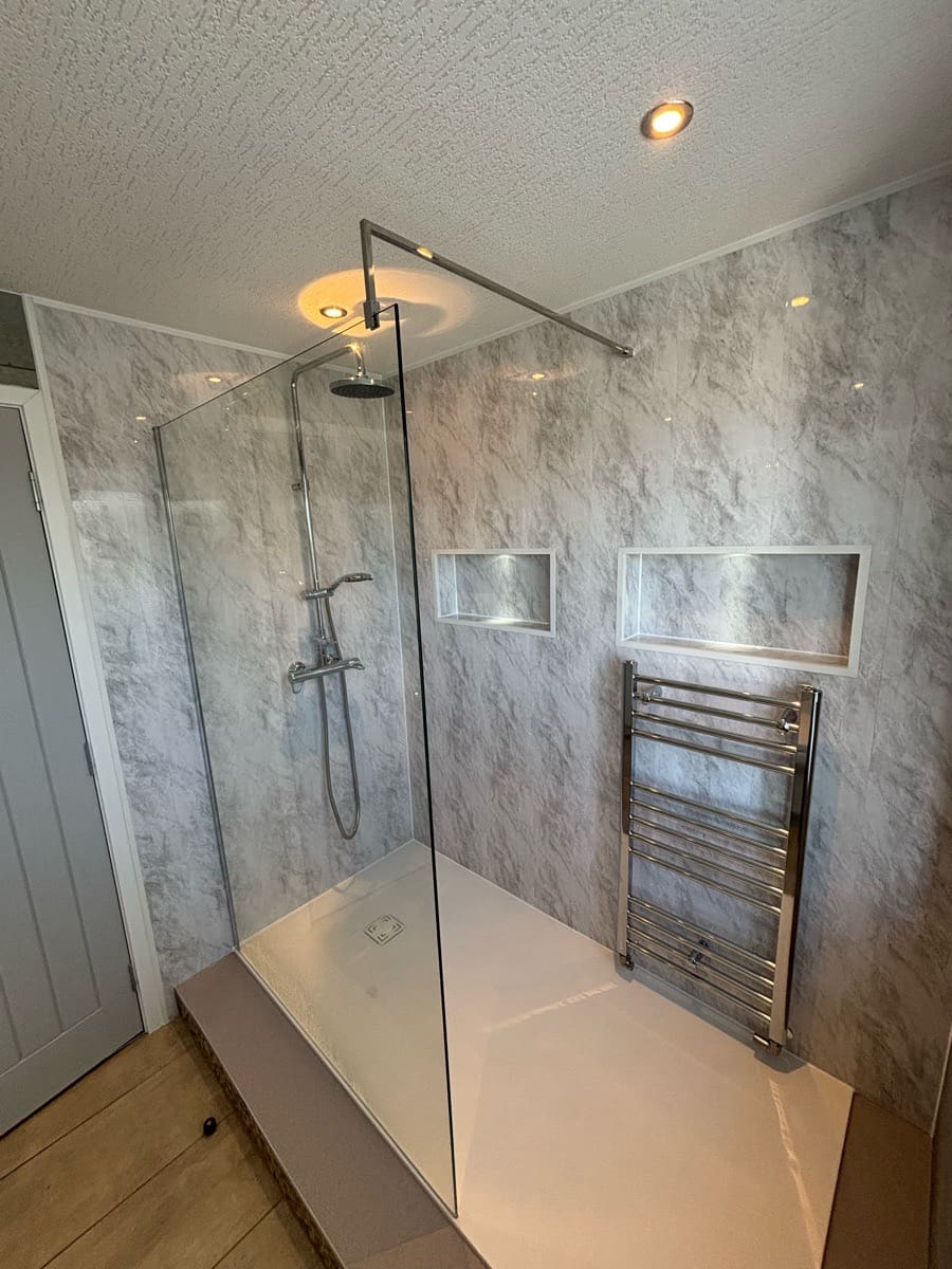 Mrs H, who lives with arthritis, found her freestanding bath increasingly difficult to use. She wanted the bath removed and replaced with a walk-in shower installation that would provide safe, comfortable access while still offering a stylish, contemporary bathroom design. Mrs H was clear that she did not want the room to resemble a typical clinical style bathroom and preferred a modern look that blended with her home.
